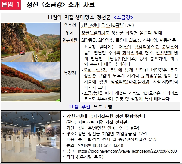 강원도, 「11월 지질·생태명소」 정선 <소금강> 선정