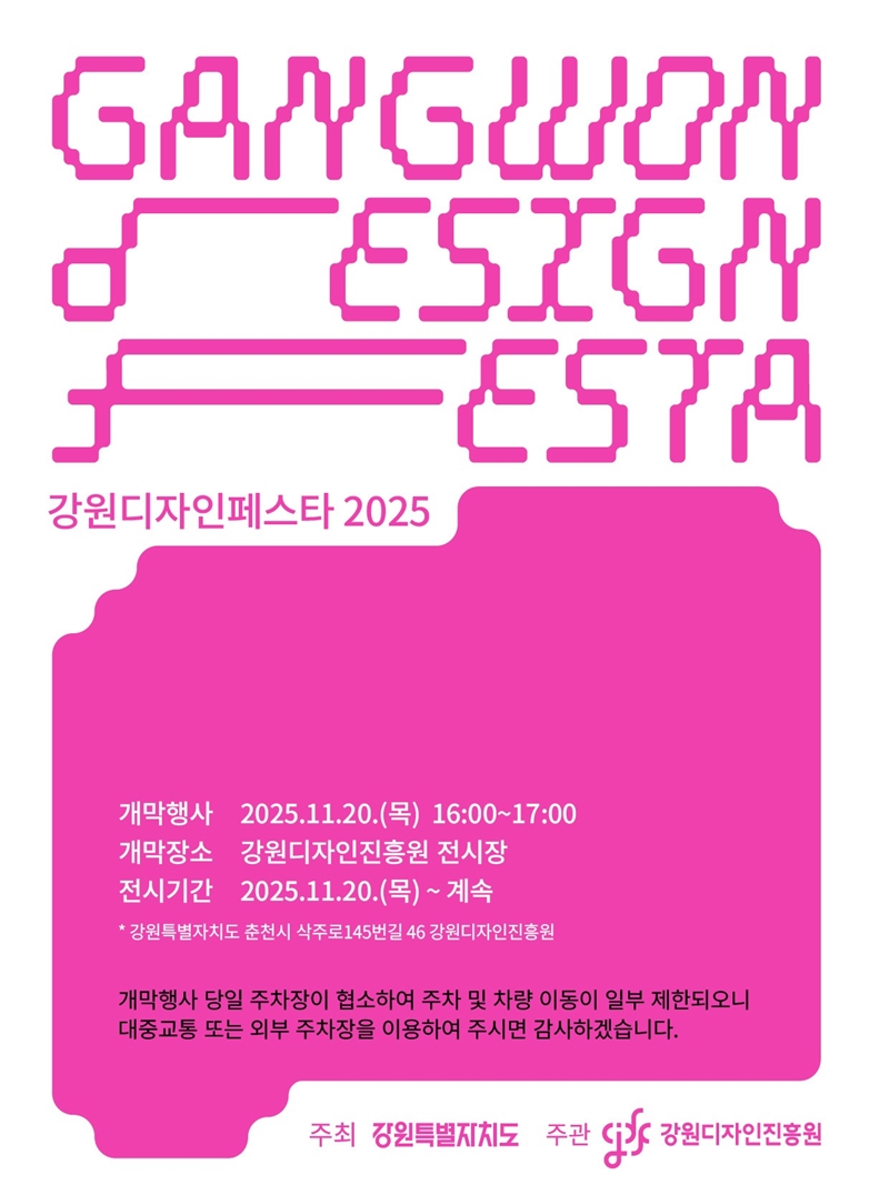 강원특별자치도가 주최하고 강원디자인진흥원(원장 최인숙, 이하 ‘진흥원’)이 주관하는 ‘강원디자인페스타 2025’가 오는 11월 20일 진흥원 전시장에서 개막한다.