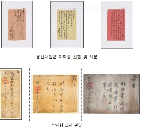 - 흥선대원군 이하응이 정치 후원자였던 신좌모에게 보냈던 간찰 29점과 제문 1점으로, 흥선대원군이 정치적으로 실각한 직후인 1874~1877년까지 친필로 작성한 고문서이다.