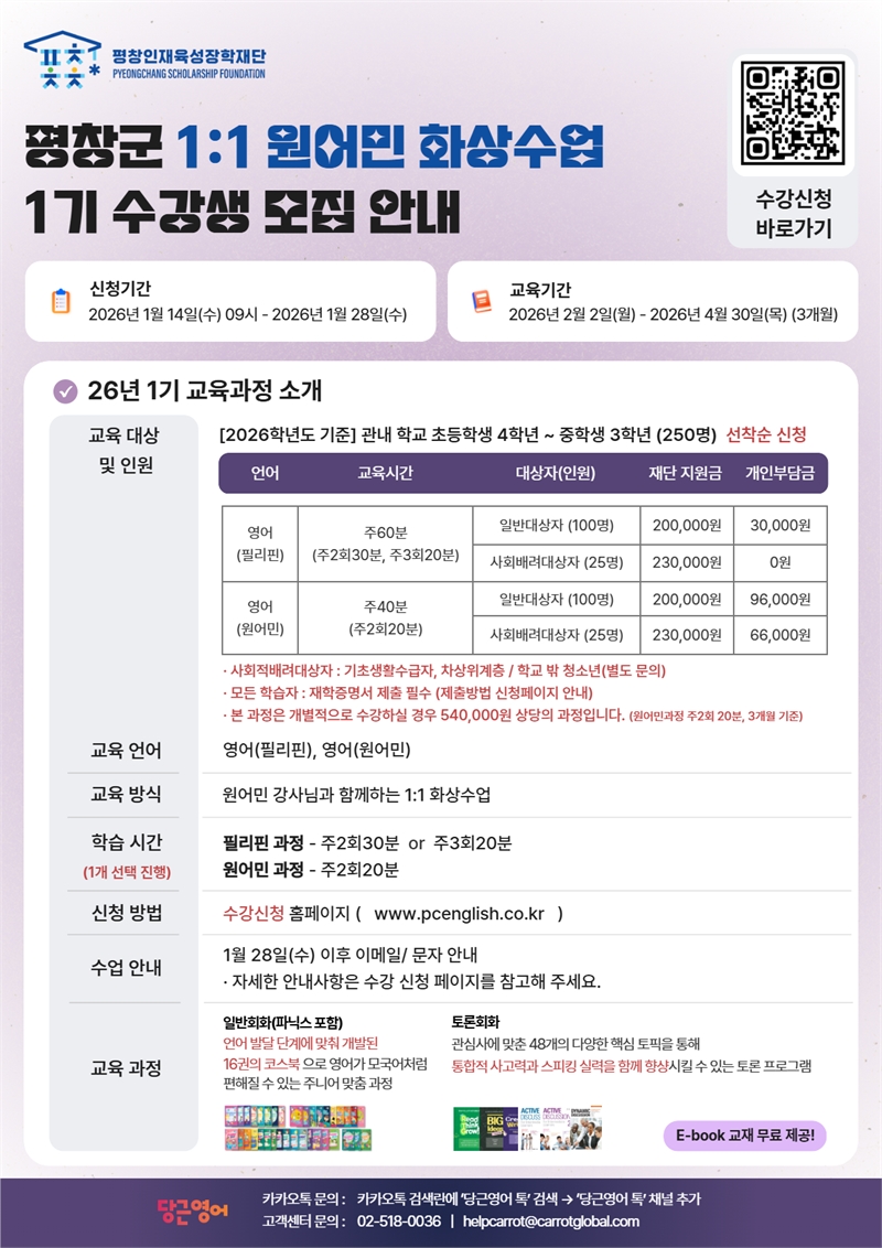 한편, 영월형 농촌유학은 2023년 유학생 48명에서 2025년말 123명으로 대폭 증가했으며, 2026학년도 1학기 신규 유학생은 오는 1월 20일까지 모집 중으로 1월 7일 기준, 145명 이상의 유학생이 영월에서 생활하게 될 것으로 추정된다.