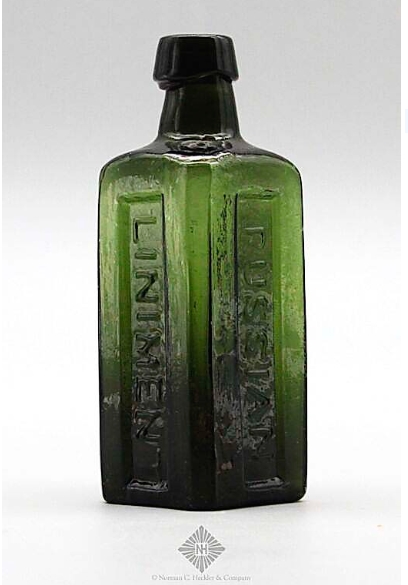 Tom’s Russian Liniment: 높이 11.4cm, 진한 올리브색, 1840~1860년경